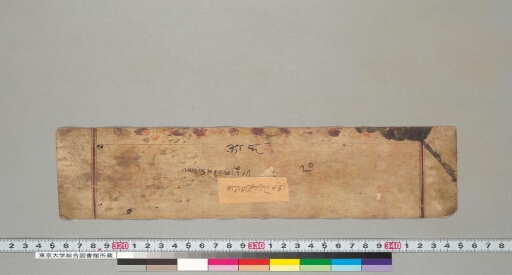 A Sanskrit grammar text deals with the dhātupāṭha (root verbs) section. Although the title of the text is missing and it is incomplete, it appears to be the Kāśakṛtsnaśabdakalpa—a detailed dhātupāṭha following the Kātantra school and attributed to Kāśakṛtsna. However, the manuscript documents only the sūtras. The manuscript covers the following chapters: bhvādigaṇa-parasmaipada (f.8a);lugvikaraṇe-adādi (f.17a); yan-vikaraṇe divādigaṇa (f.19b); nu-vikaraṇa svādigaṇa (f.20a); ag-vikaraṇa studādigaṇa (f.22a).