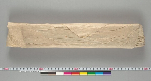 A Kośa text dealing with a vocabulary of synonyms was composed by the Jain author Dhanañjaya, son of Vāsudeva and Śrīdevī, and a pupil of Daśaratha. This manuscript contains the first chapter with 203 verses, but there are other manuscripts that contain two chapters. The second chapter describes homonyms. Sometimes, the first chapter is titled Nāmamālā and the second chapter Nighaṇṭu. However, one of the concluding verses of this manuscript mentions the name Nāmamālā, while the colophon refers to the text as Dhanañjayanighaṇṭu. At the end of the text, Dhanañjaya references Akalaṅka's Pramāṇaśāstra, Pūjyapāda's Śāsanaśāstra, and his own Dvisandhānakāvya, which is famously known as Rāghavapāṇḍavīya (NCC, Vol. 10, p. 45). Most of the folia are illegible, especially the colophon section of the manuscript, which makes the name of the scribe unreadable. 'Fol. 28 is missing. Many places are stained.' (Matsunami, 1965, p. 75).