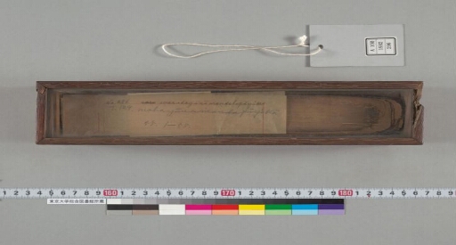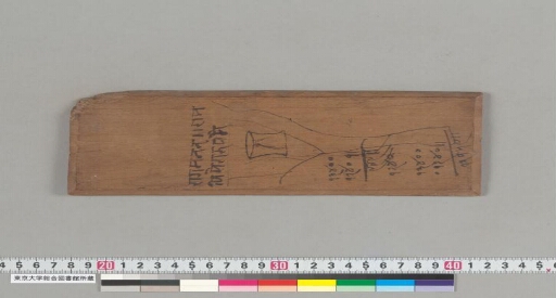The Sarvadurgatipariśodhana (SDP) Tantra, or The Purification of All Negative Rebirths, is a Buddhist Yoga Tantra long associated with funerary practices across various Buddhist cultures. However, like most canonical tantras, the text itself offers little practical ritual instruction. Instead, this role is taken up by local ritual manuals and handbooks that have developed around the tantra over the centuries (Open Edition Journals). The SDP consists of eleven chapters. In this ms. the top wooden slat has a sketch of a Buddha holding a bowl.